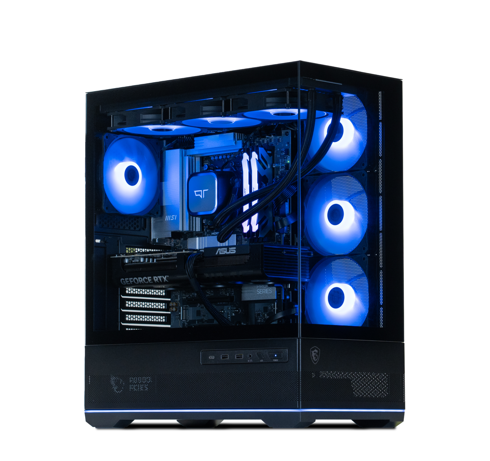 Horizon is built for gamers who want to see their system in action. Its panoramic glass design opens up multiple viewing angles, showcasing every component from high-end graphics to advanced cooling without obstruction.